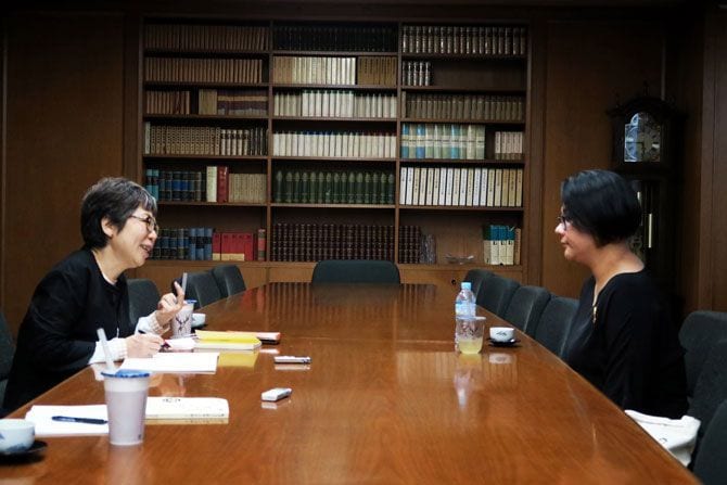 聞き手の矢部万紀子さん(左)とジェーン・スーさん(右)(撮影=プレジデントオンライン編集部)