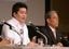 2005年4月、都内で和解合意の記者会見をするライブドアの堀江貴文社長(当時・左)とフジテレビの日枝久会長(当時・右)(写真=時事通信フォト)