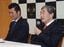 2018年5月28日、RIZAP(ライザップ)の最高執行責任者(COO)への就任を発表する松本晃カルビー会長(右)(写真=時事通信)