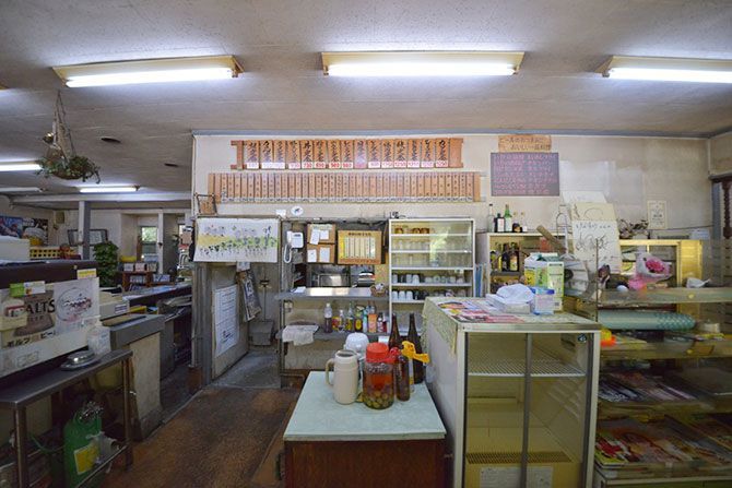 ドライブインといえばマンガがつきもの。ドライブイン峠の本棚には、西村さんご夫婦のお子さんたちが読み終えた漫画が置かれている。