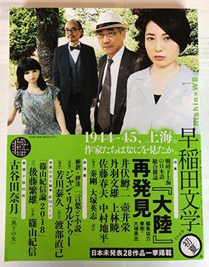 「早稲田文学 2018年初夏号」(筑摩書房)。表紙には渡部直己・早大教授(右から2人目)が写っている。
