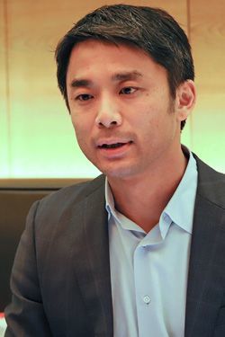 ライフネット生命の岩瀬大輔会長(左)、フレンチシェフの松嶋啓介氏(右)