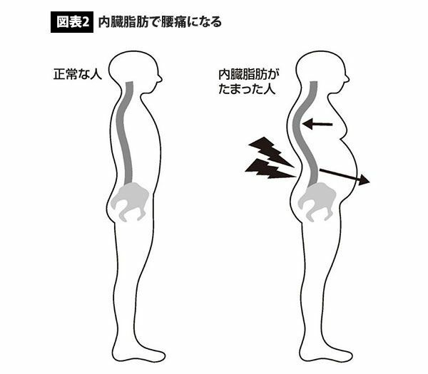 内臓脂肪で腹がせり出してくると、バランスをとるために腰に余計な負担がかかる。(図版提供=幻冬舎)