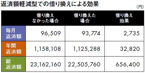 住宅ローンの残高2000万円、残りの返済期間20年、金利1.5%を1.2%の金利に借り換えた場合(元利均等返済、ボーナス返済なし)。