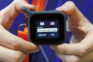 CEATEC Japan 2017に出展されたNECの多言語音声翻訳サービス製品。(AFLO=写真)