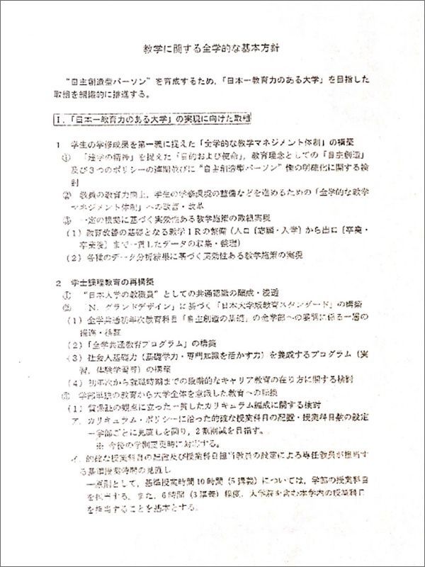 2015年7月に学内に通達された文書「教学に関する全学的な基本方針」