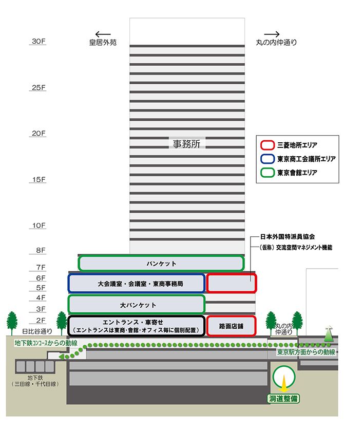 三菱地所と東京商工会議所、東京會舘が共同開発する「丸の内二重橋ビルディング」の外観。