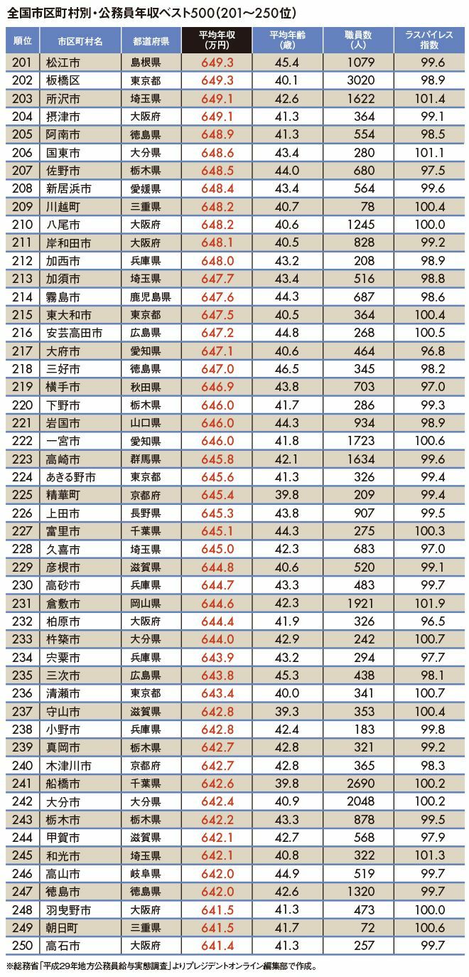 "地方公務員年収ランキング"トップ500
