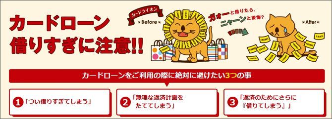 全銀協のウェブサイトでは「カードローン借りすぎに注意」というページがある(全銀行ウェブサイトより)