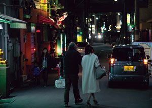 右:大阪・西成の商店街。「男の美学……60代70代は男で死にたい」と書かれている。左:70代に見えない風俗嬢のゆりさん。「勃たせるためには何でも使う」。