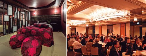 右:シニアが集まるお見合いパーティー。男性の7~8割はセックスにこだわる。左:高齢者に人気のラブホの和風ルーム。ベッドの下は畳となっている。