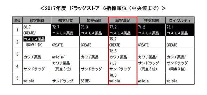 日本生産性本部「2017年度JCSI(日本版顧客満足度指数)」より抜粋