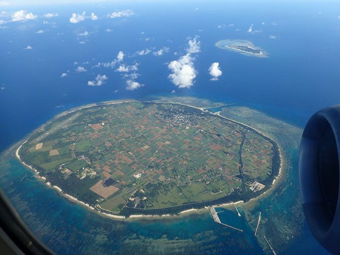 沖縄県宮古郡多良間村全景。手前が多良間島、奥の小さい島が水納島。(©Yamada udon/ウィキペディアより)