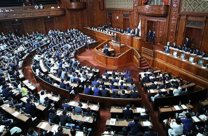 2018年7月18日、衆議院本会議で、参議院議員定数を6増する改正公職選挙法が可決、成立した。野党がそろって反対したほか、与党では自民の船田元氏が退席し、造反した。(写真=時事通信フォト)