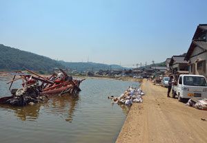 大豪雨に襲われた岡山県倉敷市の真備地区。