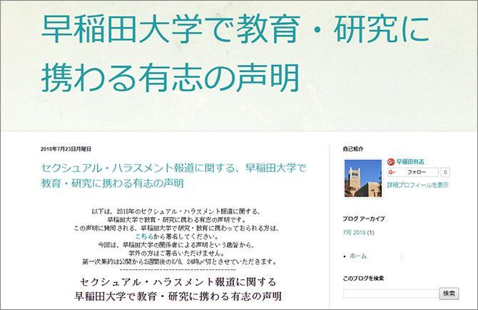 早大セクハラ"教員32人が共同声明"の意味