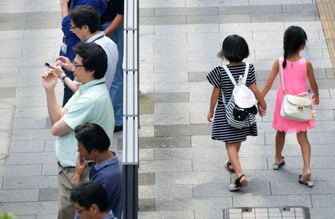 路上の喫煙所(東京都港区、2016年8月12日撮影)(写真=時事通信フォト)