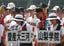 2018年8月4日、熱中症対策のため、開会式リハーサルで水を飲む高校球児(写真=時事通信フォト)