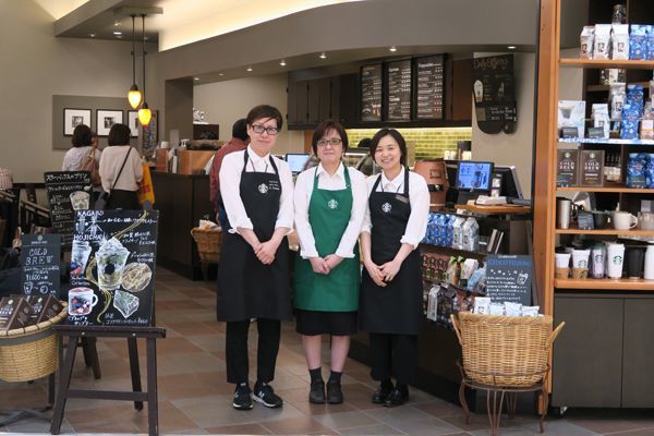 スターバックス コーヒー イオンモール苫小牧店で働く、山田奈津子さん、鈴木美左子さん、店長(取材時)の野田なつみさん(人物左から/撮影=プレジデントオンライン編集部)