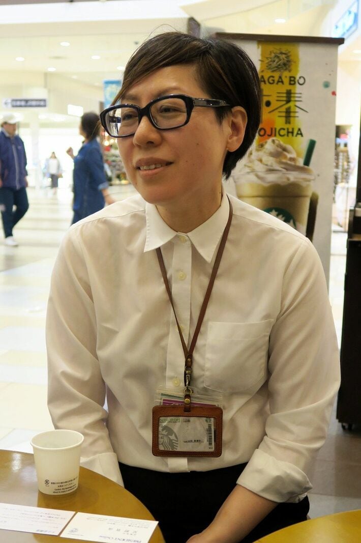 ブラックエプロンをもつ山田奈津子さん。スタバで働くまでコーヒーは飲めなかった。