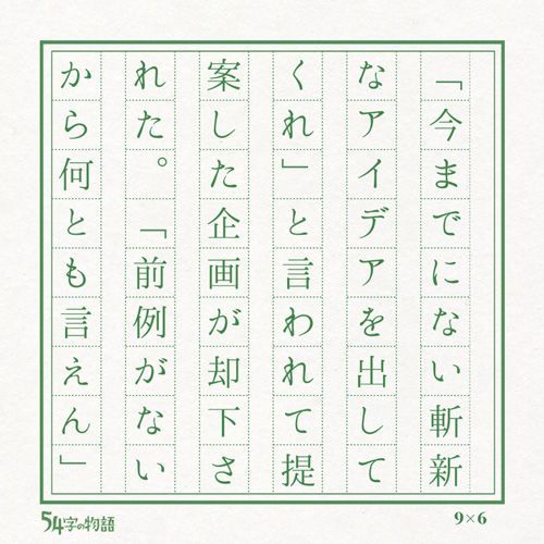 「今までにない斬新なアイデアを出してくれ」と言われて提案した企画が却下された。「前例がないから何とも言えん」