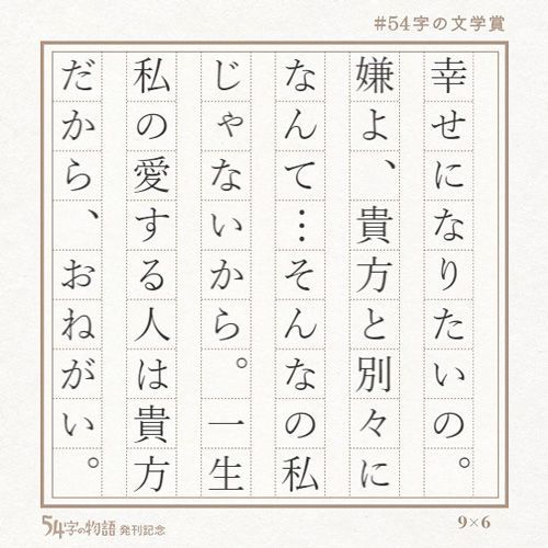 幸せになりたいの。/嫌よ、貴方と別々に/なんて…そんなの私/じゃないから。一生/私の愛する人は貴方/だから、お願い。(投稿者:@yukkemakki さん)