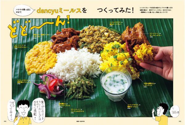 名人・人気店のスパイスカレーのレシピなどをどどーんと掲載。「dancyu」9月号、特集「スパイスカレー 新・国民食宣言」より(撮影=安彦幸枝、漫画=ラズウェル細木)