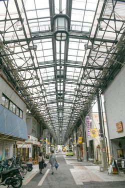 円頓寺商店街のアーケード。自然光が入るつくりになっている。(写真=入江啓祐)