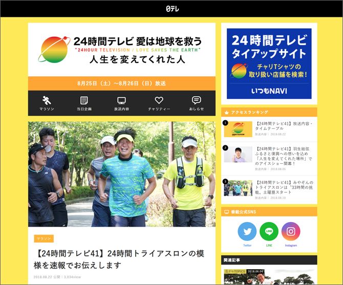 日本テレビ『24時間テレビ41 愛は地球を救う』の公式サイトより。