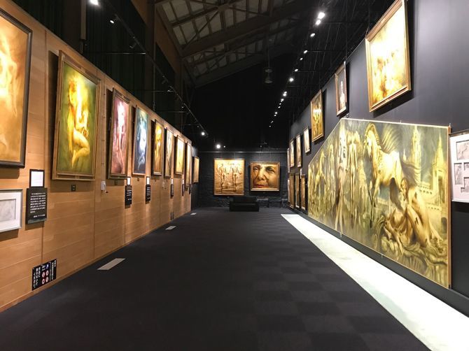 体育館を改装した展示室に展示された縦9m、横幅27mの巨大油彩画(写真=ディマシオ美術館提供)