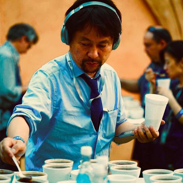 パナマのゲイシャコーヒーの品評会で国際審査員を務める副社長の鈴木太郎さん(写真提供=サザコーヒー)