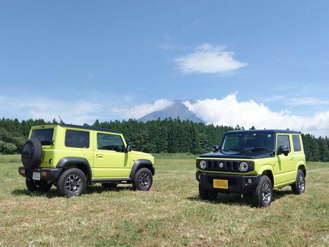 20年ぶりにフルモデルチェンジしたスズキの軽自動車SUV「ジムニー」(右)と小型SUV「ジムニーシエラ」(左)