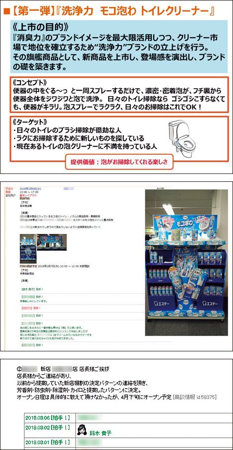 (上)ヒット商品の企画書には何が書いてあるか(中)「日報」で店頭陳列の情報共有をする(下)「日報」の社長のスタンプ