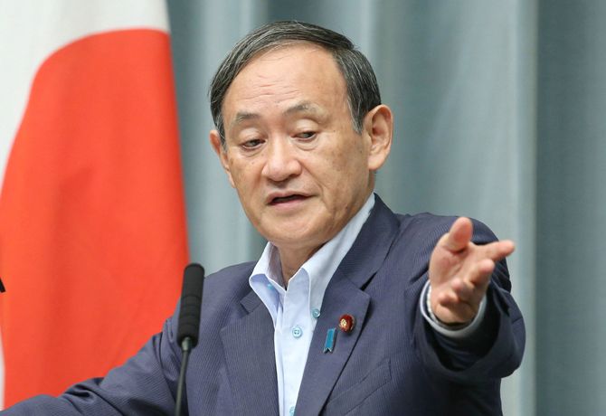 8月29日、首相官邸で記者会見する菅義偉官房長官(写真=時事通信フォト)