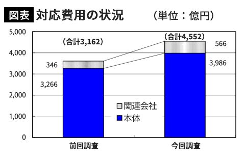日本銀行のレポート「コンピューター 2000年問題に関するわが国金融界の対応状況」の一部。金融機関の「2000年問題」対応費用は4552億円に上る