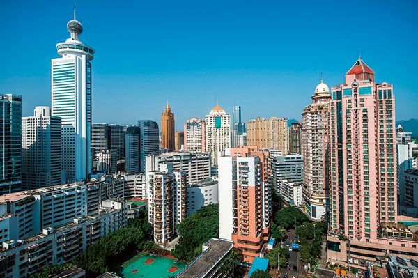中国・深セン市の都心部、羅湖区の高層ビル群。(AFLO=写真)