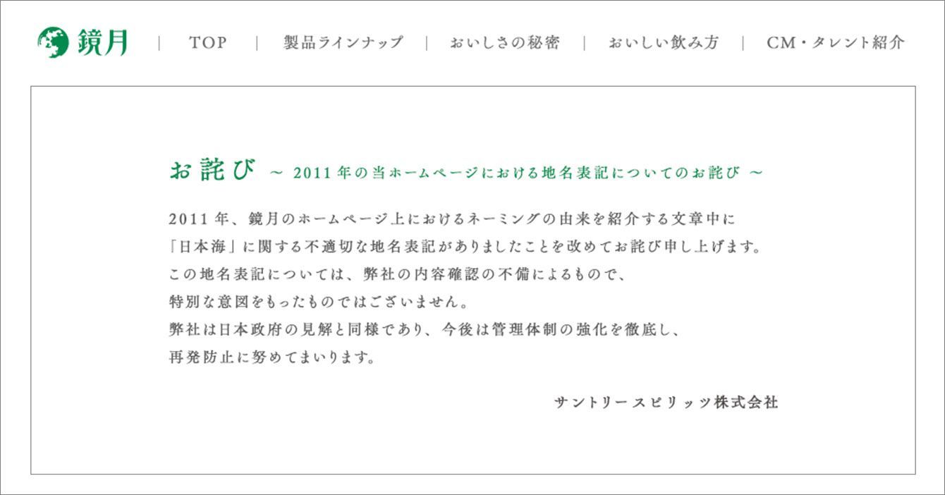 現在のサントリー公式サイト「鏡月」紹介ページ