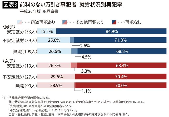前科のない万引き事犯者 就労状況別再犯率(2014年度版犯罪白書より)