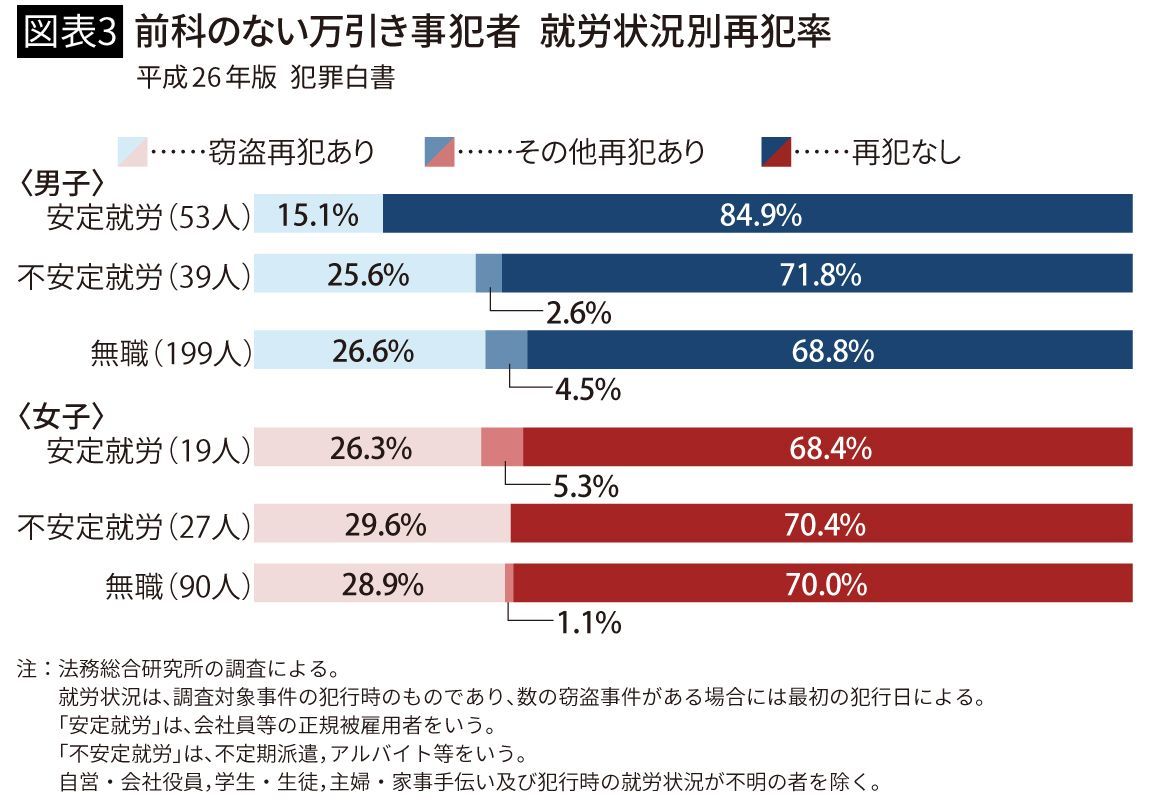 前科のない万引き事犯者 就労状況別再犯率(2014年度版犯罪白書より)