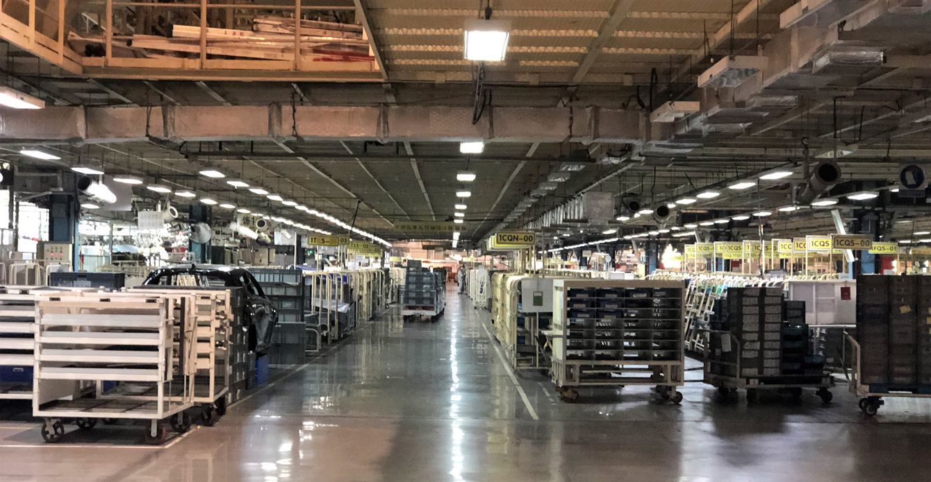 中国の広州にあるトヨタの自動車工場の内観。野地氏が見た限り、切れている照明はなかった。