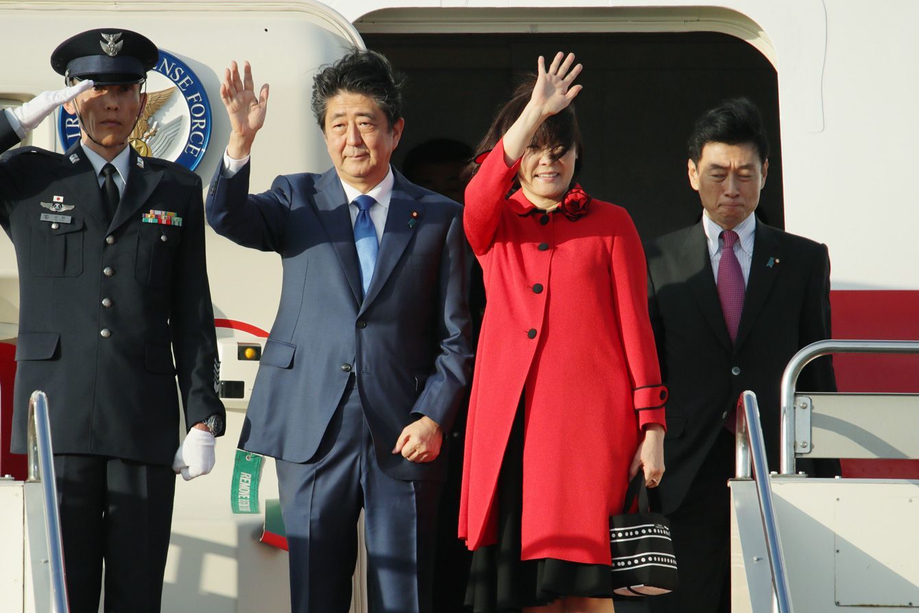 2018年9月23日、米国へ出発する安倍晋三首相と昭恵夫人(写真=時事通信フォト)