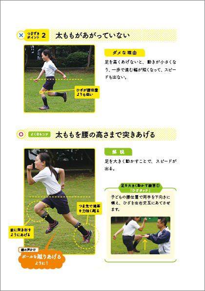 太ももを腰の高さまで突き上げて、ボールを蹴り上げるように走る(写真=『読むだけで どんな運動もできる子になる!』)