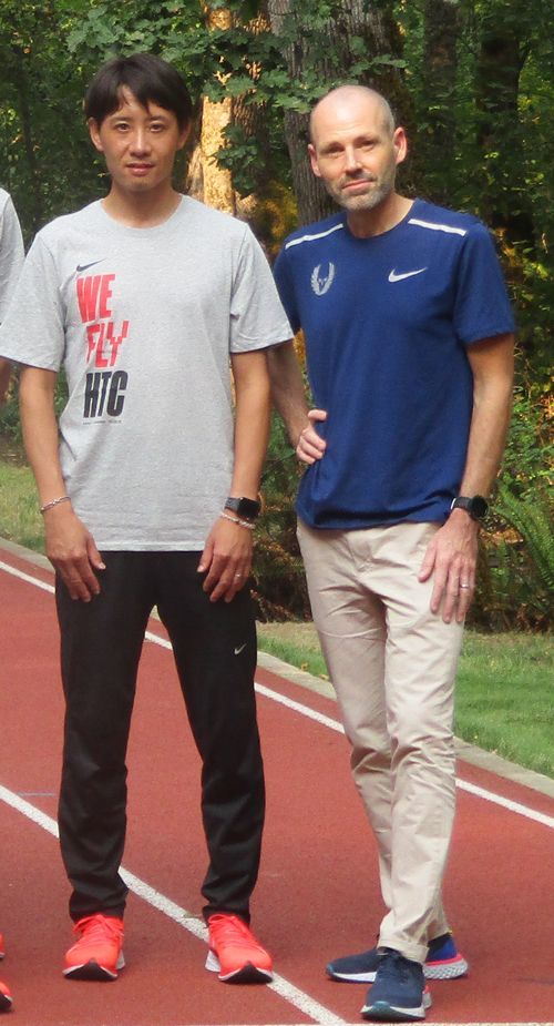 右端が、大迫選手のコーチ、ピート・ジュリアン氏。左隣は、東洋大・酒井俊幸監督。(撮影=酒井政人)