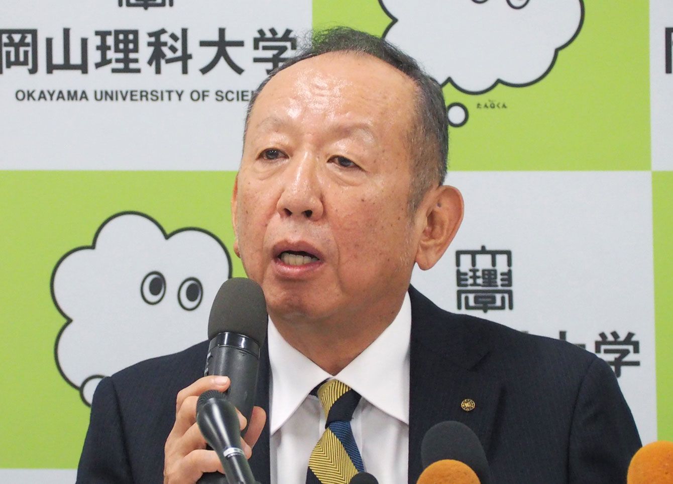 2018年10月7日、岡山理科大の獣医学部新設問題をめぐり、記者会見する学校法人「加計学園」の加計孝太郎理事長(写真=時事通信フォト)
