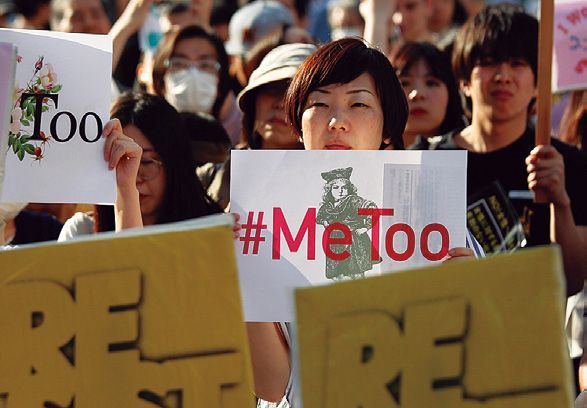 セクハラ告発が広がる?(新宿駅前の抗議デモ、4月)。(AFLO=写真)