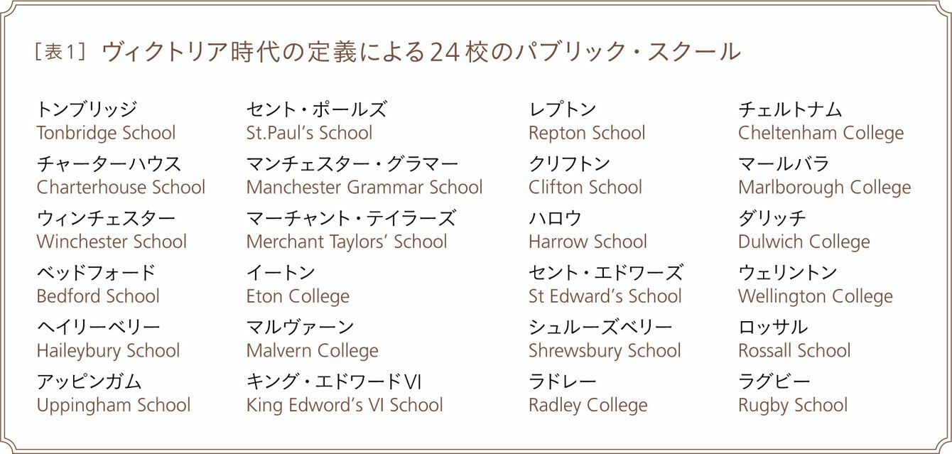 ヴィクトリア時代の定義による24校のパブリック・スクール(『英国パブリック・スクールへようこそ!』より)