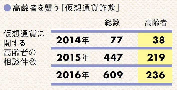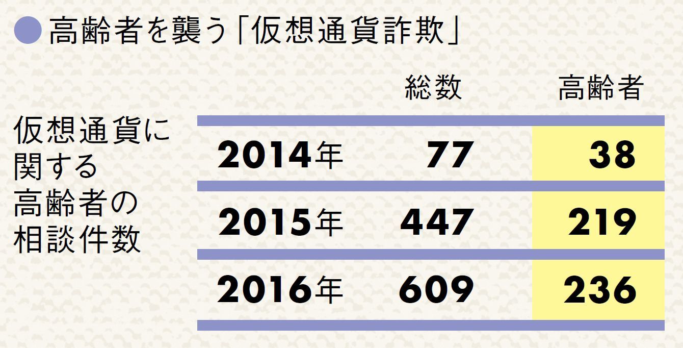 仮想通貨に関する詐欺は年々増えている。全体の数もさることながら、高齢者を狙ったものが多く、社会問題にもなっている。