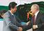東方経済フォーラムの全体会合で演説を終え、握手するプーチン大統領と安倍首相(2018年9月12日、ロシア・ウラジオストク)。(時事通信フォト=写真)
