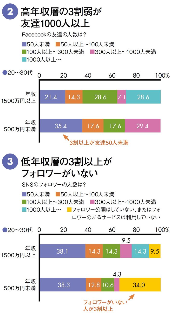 年収500万未満の3割はSNSフォロワー0人