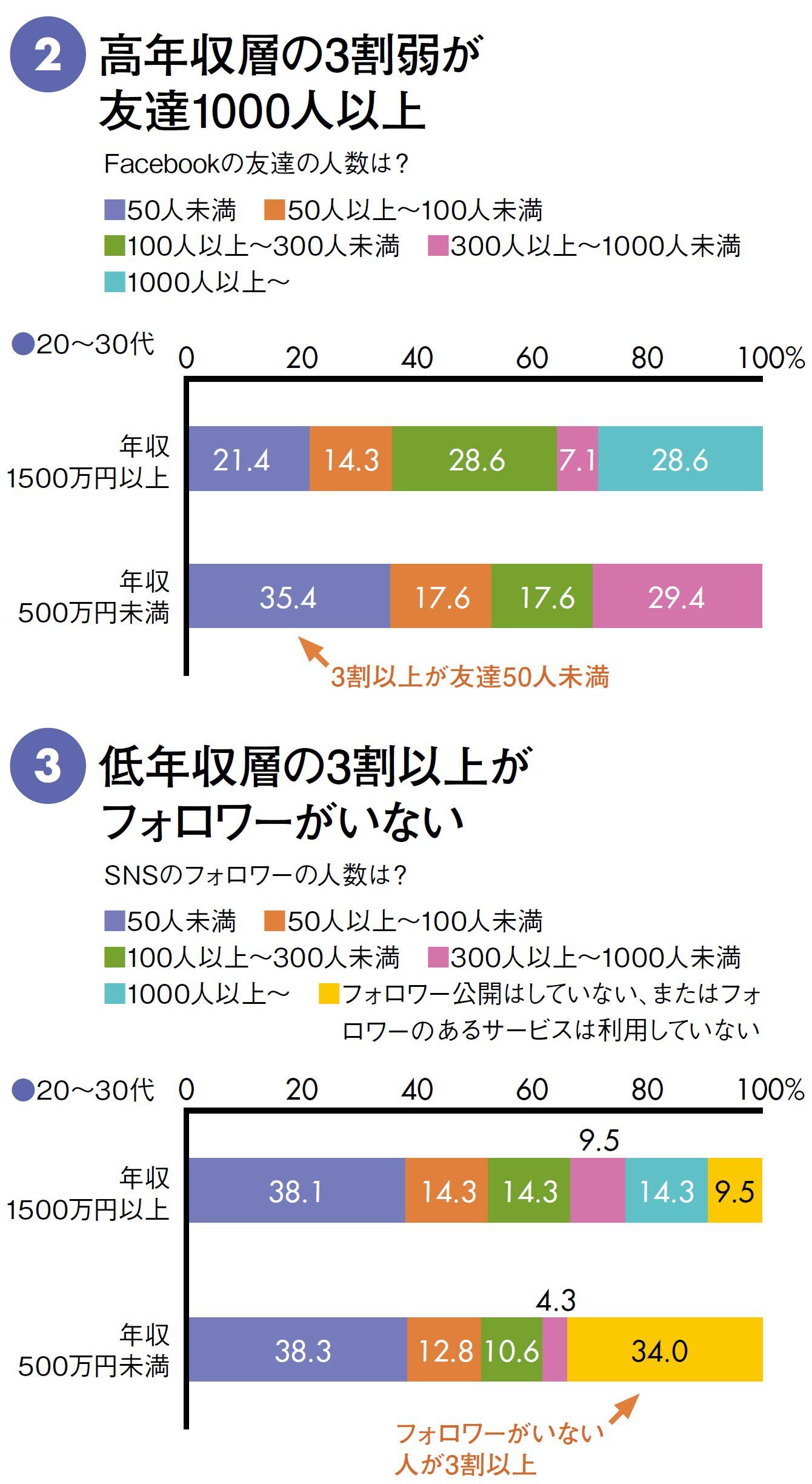 年収500万未満の3割はSNSフォロワー0人